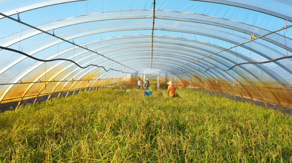 春種一粒粟,秋收萬顆子。又到了谷物泛黃的金秋時節,今天來到了金禾現代農業旱插水稻收割現場,金燦燦的稻穗鋪滿了一棟棟大棚,農人們紛紛拿起鐮刀進行收割,確保秋糧顆粒歸倉。